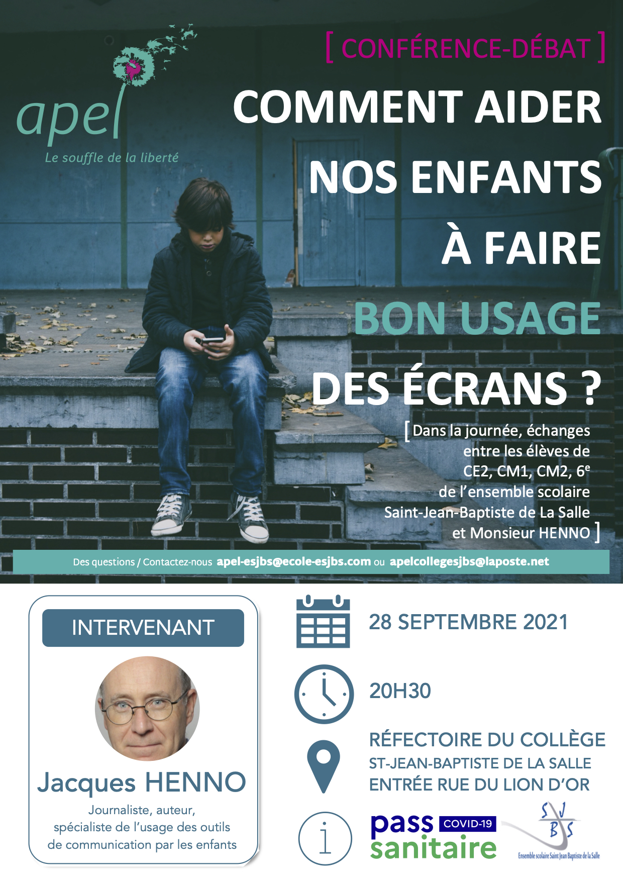 Mardi 28 septembre 2021, je serai à Vitry-le-François (51) pour rencontrer dans la journée les enfants du primaire et de sixième, puis le soir pour donner une conférence réservées aux parents de l’ensemble scolaire Saint Jean-Baptiste de la Salle.